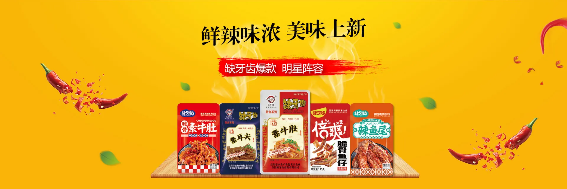 湖南缺牙齿食品有限公司成立于2021年11月,位于湖南省益阳市长春经济开发区食品产业园。公司总投资5000余万元是2022年益阳市资阳区乡村振兴签约项目,占地面积近1.2万平方米,生产场地及配套设施建筑面积约8000平方米,有自动杀菌锅、夹层锅、蒸汽锅炉、全自动包装机、前处理设备、环保污水处理系统等生产设备配套设施150余台(套)。公司主营业务是豆制品、水产制品、蔬菜制品、薯类、膨化食品、肉制品等休闲食品的研发、生产、销售,具有年产2万吨休闲食品的产能,已经上市的产品有9个品类30多个单品;企业现有员工100余人,专业技术人员32人,现拥有“缺牙齿”等5个商标,专利4个。